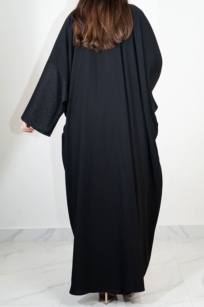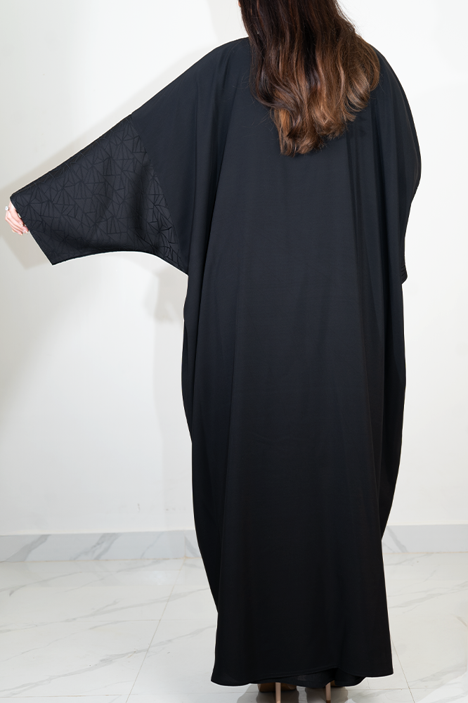 تميزي بإطلالة راقية مع عبايات اسود ساده بتصميم نصف فراشة الفاخر، الذي يجمع بين خامة البلاك بيري الأنيقة ولمسات الجاكار المشجر لإطلالة جذابة تناسب جميع المناسبات.